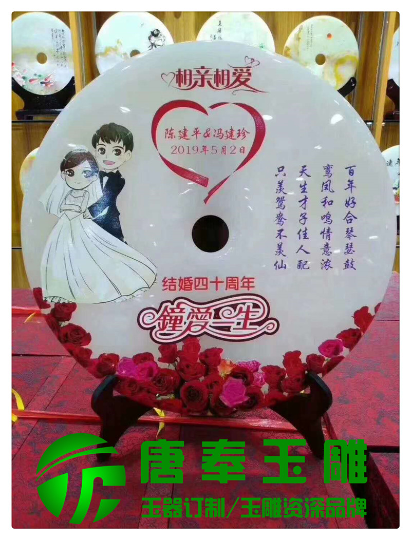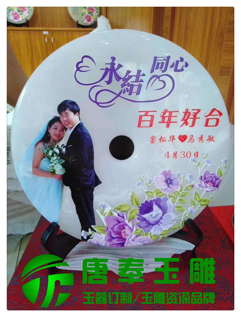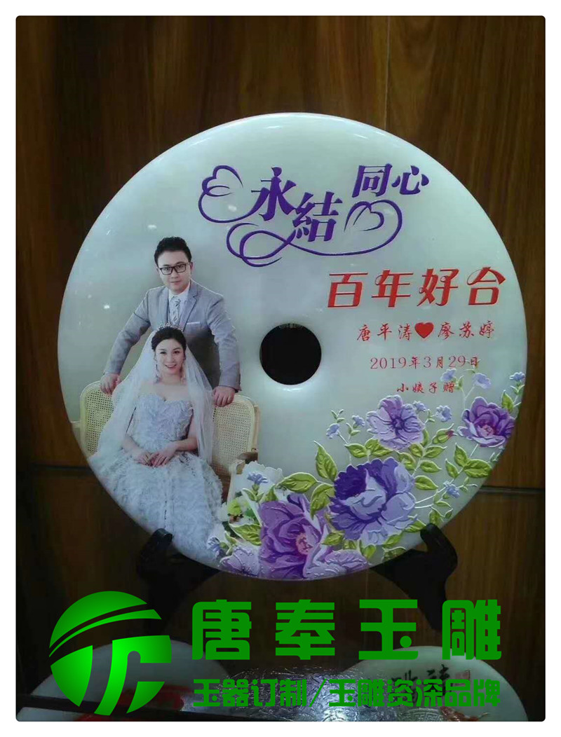 結婚紀念浮雕圖案玉平安扣用于竣工開業、周年紀念、畢業紀念、結婚紀念等地方,浮雕圖案,公司logo,刻字等,既有品位又有收藏價值。